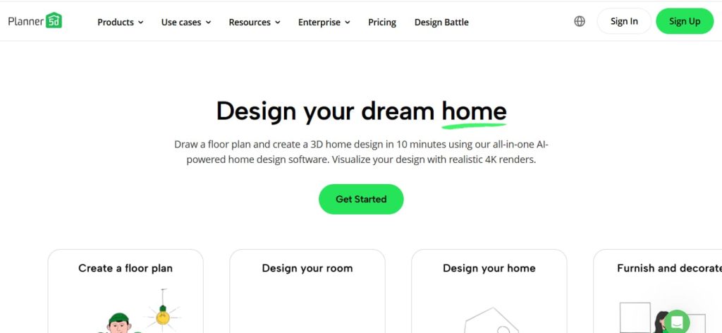 Planner 5D is a user-friendly AI tool for designing interiors and exteriors. It allows architects and students to create 2D floor plans and convert them into 3D models instantly.